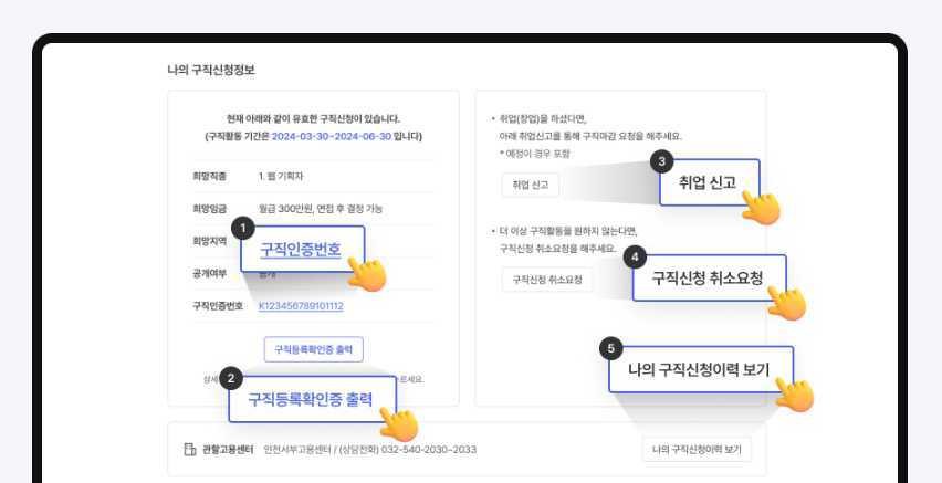▶ 구직인증번호는 구직등록을 하게 되면 발급받게 됩니다.