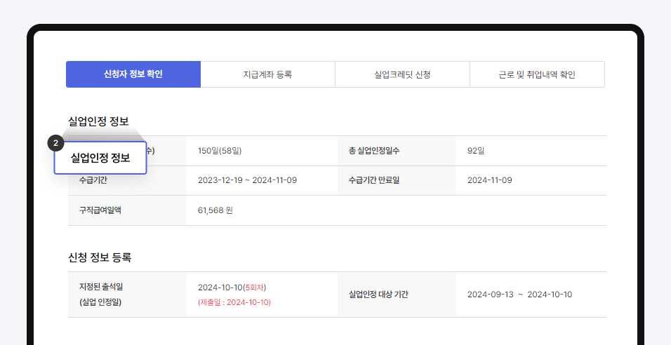 2-1. 실업인정 인터넷 신청 기본정보 확인